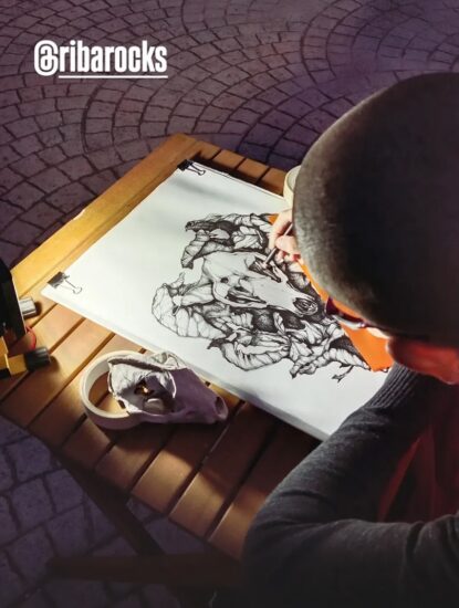 Riba Rocks brought their brilliant branded T-shirts, while I exhibited sculptural works, canvas drawings, and copies of my artist book ‘Upon Reflection’, with my latest video pieces playing throughout the afternoon.